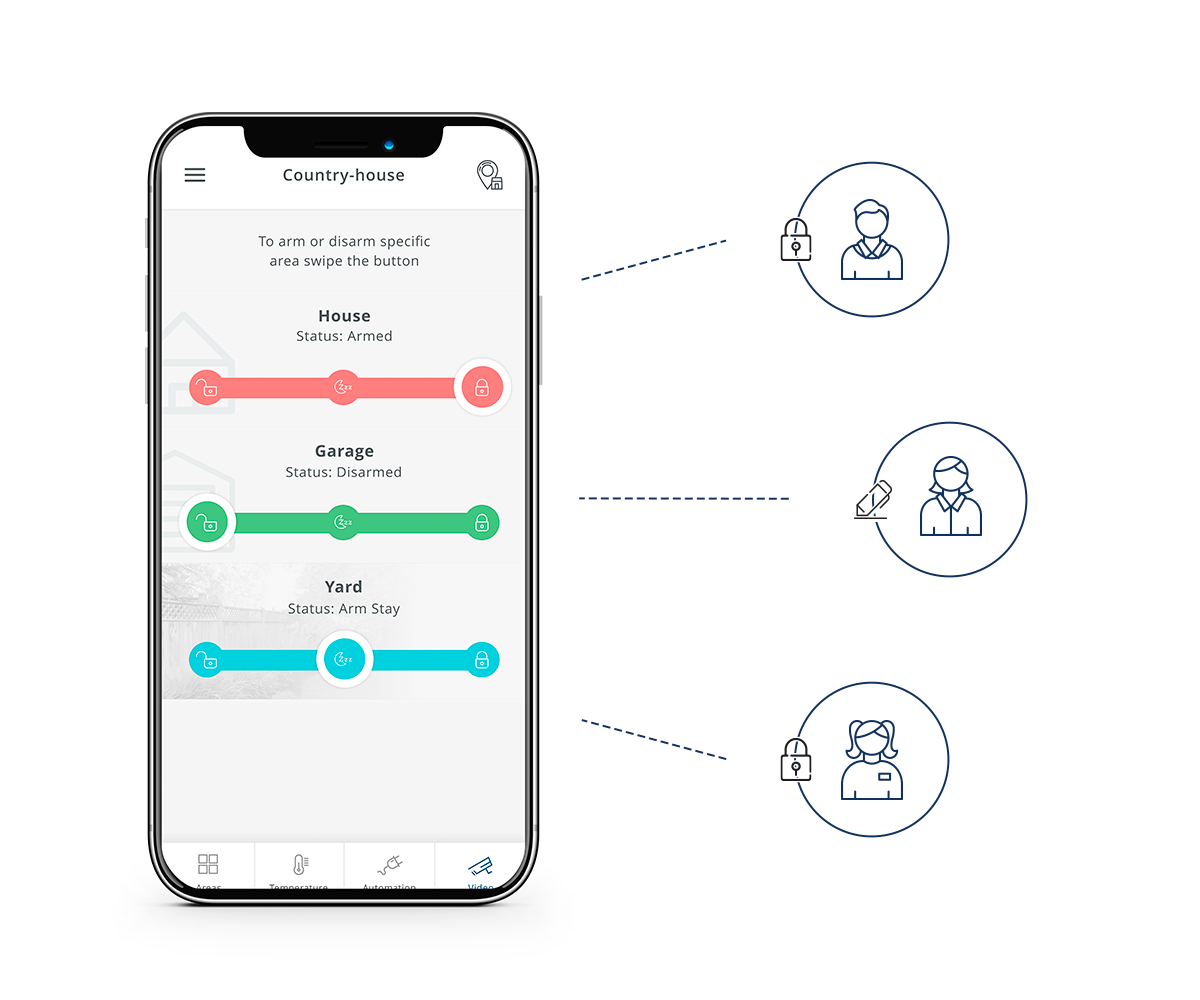 U kunt maximaal 10 gebruikers aanmaken in de Eldes Security-app. Pas het systeem aan uw behoeften aan: stel aangepaste rechten in voor elke gebruiker, schakel pushmeldingen uit die u niet wilt volgen en stel uw persoonlijke afbeeldingen in voor verschillende gebouwen. Als u uw huis verkoopt of verhuurt, kunt u het beveiligingssysteem met één klik eenvoudig overdragen aan een nieuwe eigenaar.